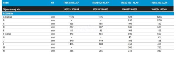 Doporučený objem expanznej nádoby: TREND 80 = 3 l, TREND 120 = 5 l, TREND 150 = 5 l, TREND 200 = 8l.