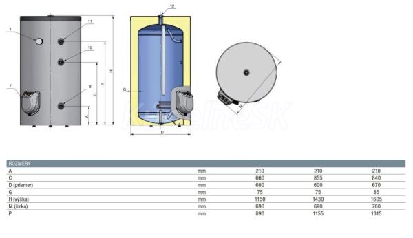 K zásobníku je možné dodatočne napojiť prírubové vykurovacie teleso o výkone: 3 kW pre 150, 200 L a 3,6,9 kW pre 300L nádrž.