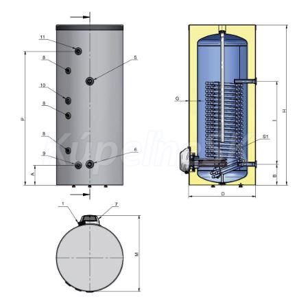 K zásobníku je možné dodatočne napojiť prírubové vykurovacie teleso - vid PRÍSLUŠENSTVO k stacionárnym zásobníkom.