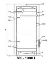 Qtermo Energy 750N V0/0 kW Stacionárny smaltovaný ohrievač 750L, 100 mm izolácia,, bez výmenníka, N V0