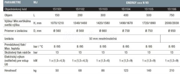 Qtermo Energy 750N V0/0 kW Stacionárny smaltovaný ohrievač 750L, 100 mm izolácia,, bez vým