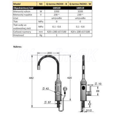 Q-termo INOXX Ohrievač vody je určený na inštaláciu na drez alebo dosku a použitie v domácich podmienkach,
