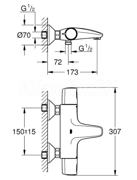 >>  Batérie vodovodné  >>  Vaňové batérie  >>  Grohe Precision Trend nástenná vaňová termostatická batéria Chróm
