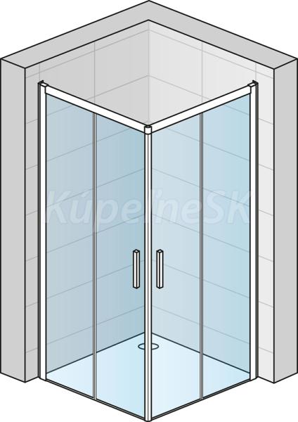 - rohový vstup s dvojdielnymi posuvným dverami (bez spodného rámového profilu)