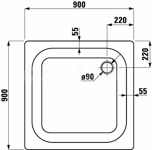 Oceľová sprchová vanička, hrúbka 3,5 mm Veľkosť 900 x900 x 65 mm 2.1501.2.000.000.1 Laufen Sprch. van. PLATINA 90X90 bílá