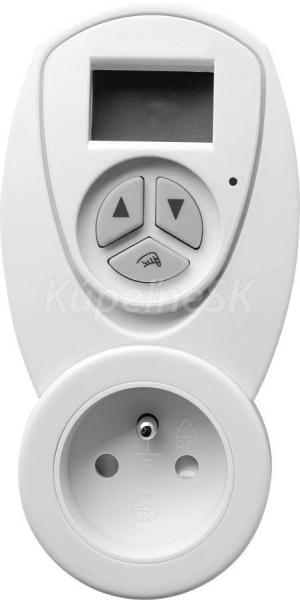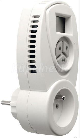 Zásuvkový elektronický termostat s časovým spínačom a protizámrazovou ochranou.