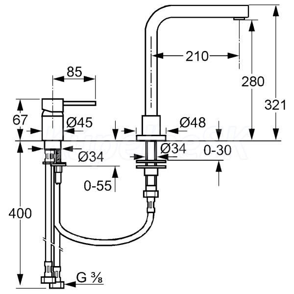 - flexibilné prípojky G 3/8