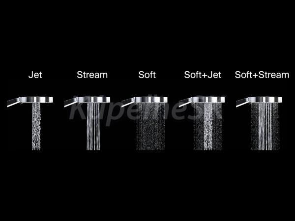 funkcie prúdu vody: 5 - Jet, Stream, Soft, Soft+Jet, Soft+Stream