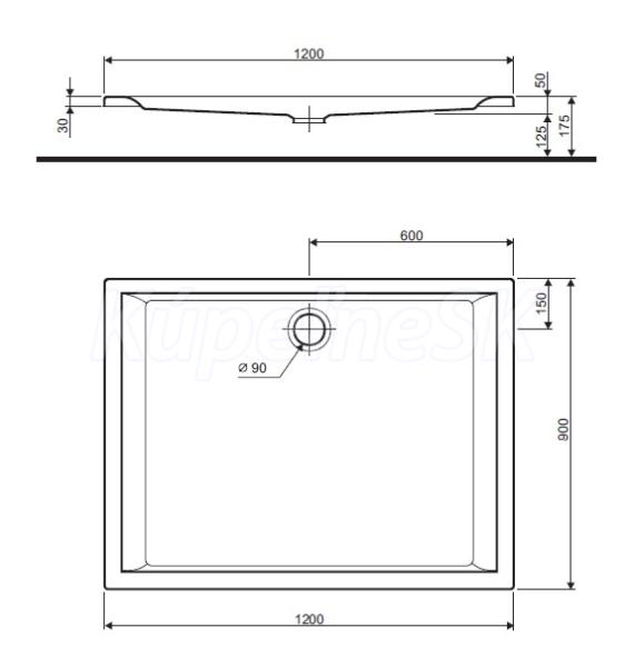 KOLO Pacifik pravouhlá sprchová vanička 120x90x5cm, Samostatná vanička určená pre kompletáciu s nohami
