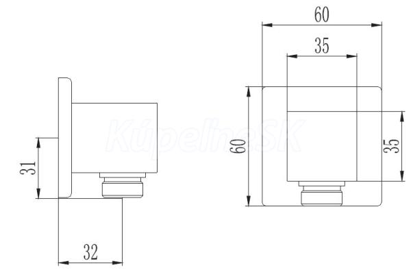 >> Batérie vodovodné >> Sprchové príslušenstvo >> Sprchové prípojné kolienka >> Sapho Vývod sprchy, hranatý, chróm 1205-02