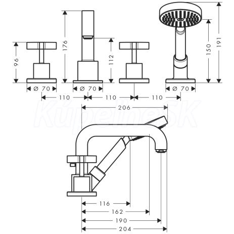 >>  Batérie vodovodné  >>  HANSGROHE  >>  Hansgrohe Sprchové príslušenstvo  >>  Axor Citterio 4-otvorová vaňová batéria s krížovými kohútikmi 2,chróm