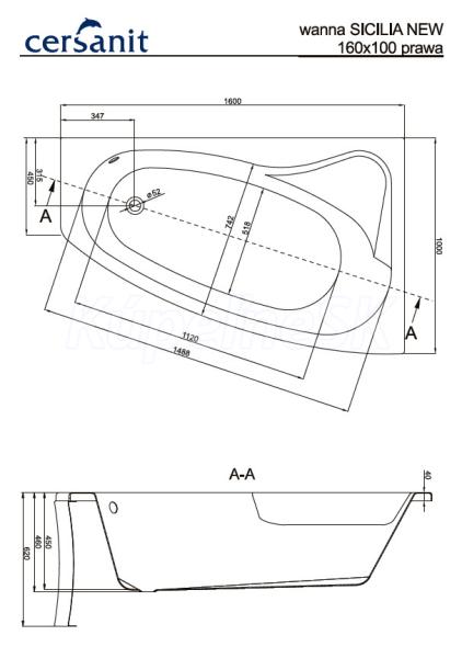 Cersanit SICILIA NEW Vaňa asymetrická 160x100 akrylátová, Pravá + nohy, Biela S301-037