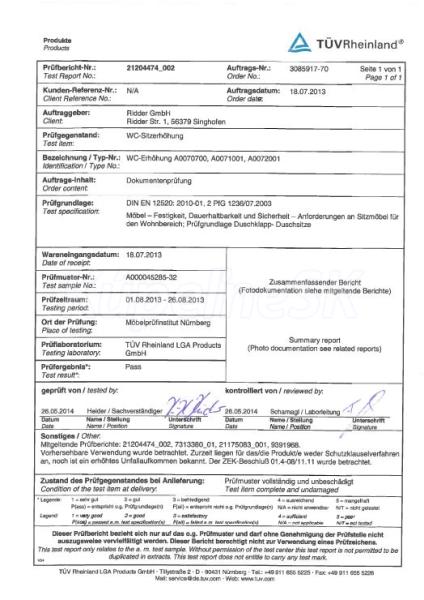 >> WC-Bidety-dosky-Pisoár >> WC sedátka >> Ridder WC sedátko zvýšené 10cm, s madlami, biele A0072001