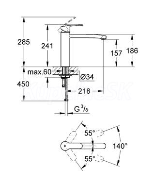 GROHE Eurostyle Cosmopolitan Páková drezová batéria,stredový výtok,obmedz.prietoku,chróm31