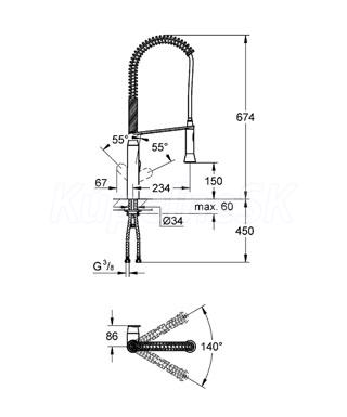 GROHE K7 Páková drezová batéria, perlátor/sprchový prúd,obmedzovač prietoku,Supersteel3295