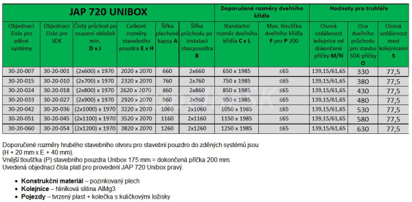 Stavebné púzdro JAP 720 UNIBOX - Typ dvojitého puzdra, v ktorom dvoje jednokrídlové dvere, sa môžu zatvárať do jednej steny (každé krídlo dverí ide na opačnou stranu). Otvor je nutné opatriť prekladom - stavebné puzdro nie je schopné niesť zaťaženie.