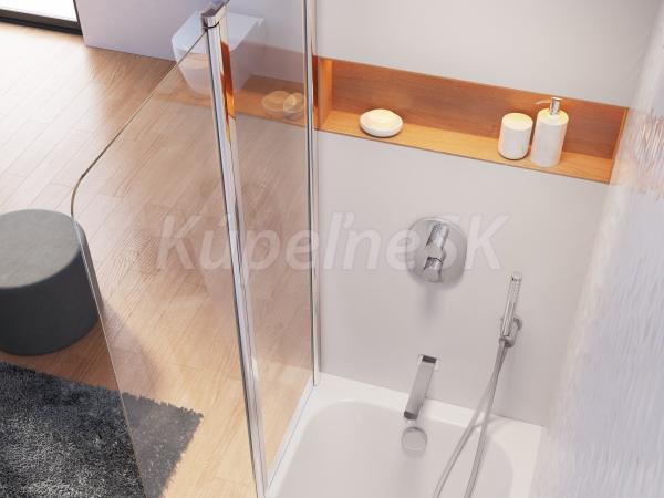 Dvojdielna pohyblivá vaňová zástena na obdĺžnikové vane. Vďaka otočnému stĺpiku je možné jej pohyblivý diel otvoriť do vnútorného priestoru vane alebo vytočiť von. Vo vyhotovení lesklý chróm a s výplňou z číreho skla s ochrannou vrstvou Ravak AntiCalc®. Ľavý variant.