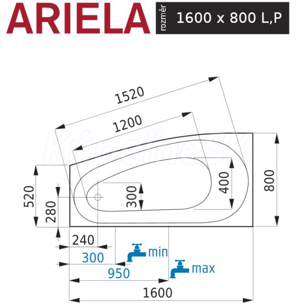 Santech ARIELA asymetrická masážna vaňa 160x80P Relaxa 300 +chromoterapia ZADARMO