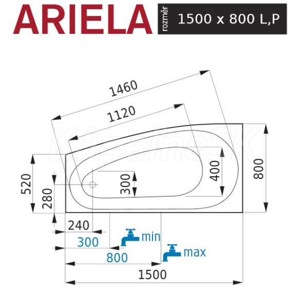 Santech ARIELA asymetrická masážna vaňa 150x80L Fitnes 300 +aut.dohr.vody +chromot.ZADARMO