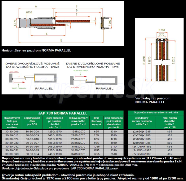 JAP stavebné puzdro 730-165cm NORMA PARALLEL B-rozmer 171cm dvere k obmurovaniu, atypické
