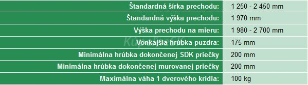 výška prechodu na mieru: 1 980 - 2 700 mm