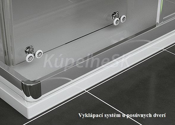 Posuvné dvere je možné odklopiť vďaka výklopnému vodiacemu profilu, čo výrazne uľahčuje čistenie. Pojazd dverí je opatrený dorazom, ktorý zabraňuje nárazu dverí na konci otvárania a tlmí zvuk pri zatváraní dverí.