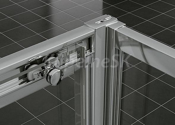 Ronal Top-Line TOE3G Sprchové dvere určené na kombináciu s druhými dverami TOE3D o ľubovoľnom rozmere, čím máte možnosť vytvoriť atypický rohový kút s rohovým vstupom. Trojdielne posuvné dvere, 3mm kalené bezpečnostné sklo so vzorom Durlux. Plastové dieliky sú v chrómovanom prevedení. Magnetické tesnenie dverí zaručujúce tesnosť dverí.