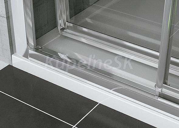Ronal Top-Line TOE3G Sprchové dvere určené na kombináciu s druhými dverami TOE3D o ľubovoľnom rozmere, čím máte možnosť vytvoriť atypický rohový kút s rohovým vstupom. Trojdielne posuvné dvere, 3mm číre kalené bezpečnostné sklo. Plastové dieliky sú v chrómovanom prevedení. Magnetické tesnenie dverí zaručujúce tesnosť dverí.