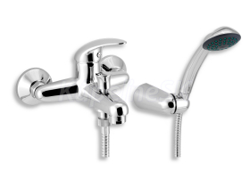 kategória distribúcie Novaservis: Vodovodní baterie | Vanové baterie nástěnné. Kvalitná a odolná, keramická kartuš KEROX 35 mm . so 7 ročnou zárukou. . Prvotriedne chrómové prevedenie. Vaňová nástenná batéria s rozostupom 150 mm a kovovým aretačným prepínačom. Súčasťou balenia je kovová sprchová viaczámková hadica 150 cm (pevnejšia a odolnejšia), otočný držiak sprchy a samočistiaca ručná sprcha.