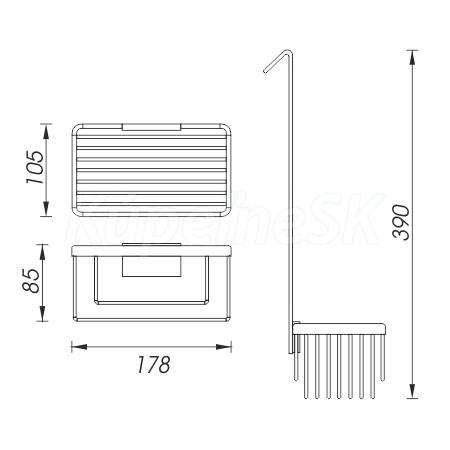 Koupelnová drátěná police s hákem pro zavěšení ve sprchovém koutě.