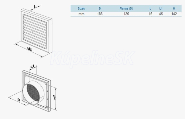 >> Obchod s inštalačným materiálom >> Ventilátory-mriežky-potrubia >> Ventilačné mriežky-Okná-krytky >> Ventilačná plastová mriežka, biela, MV120Vs-125