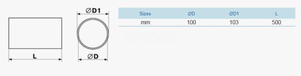 Potrubie 1005-D100/500, pevné, kruhové, plastové, rozmer: 100x103x500