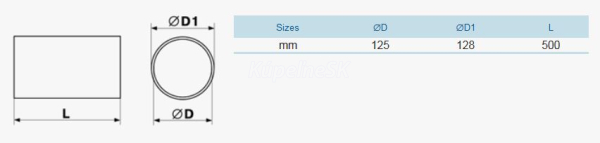 Potrubie 2005-D125/500, pevné, kruhové, plastové, rozmer: 125x128x500