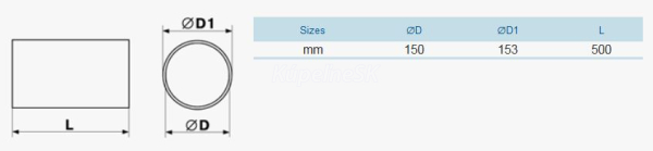 Potrubie 3005-D150/500, pevné, kruhové, plastové, rozmer: 150x153x500