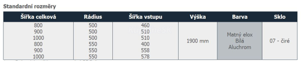 Ronal Štvrťkruh s dvojdielnymi posuvnými dverami R500 š. 750-900 v. 1900 Aluchróm/Durlux