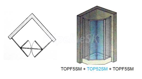 Pre kompletný kút je potrebné objednať jedny dvojkrídlové dvere TOP52SM a dvoje pevné bočné steny TOPF5.