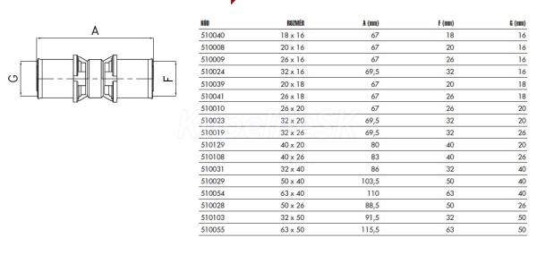 IVAR.PT 5700 Spojka PRESS redukovaná pre napojenie potrubia ALPEX , 40x32mm