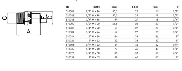 IVAR.PT 5608 Prechodka PRESS - pre potrubie ALPEX, vonkajší závit 1/2"Mx16
