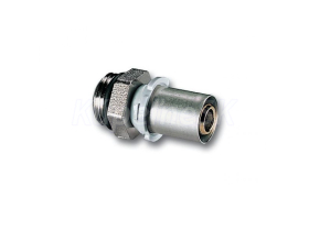 Prechodka PRESS - závit vonkajší s O-krúžkom IVAR.PT 5609, pre použitie: lisovacie kliešte B/F, pre napojenie ALPEX potrubia na G závit, tesnenie pomocou o-krúžku, materiál niklovaná mosadz OT 58, PN 10, T = 120°C