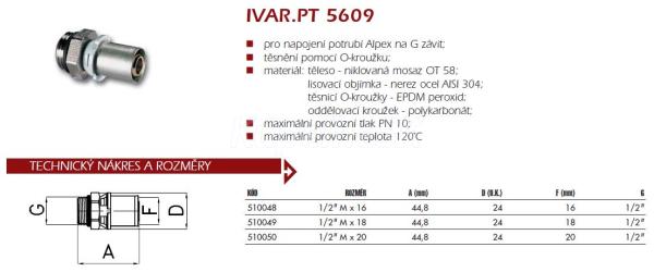 IVAR.PT 5609 Prechodka PRESS - pre potrubie ALPEX, vonkajší závit s o-krúžkom 1/2"Mx18mm