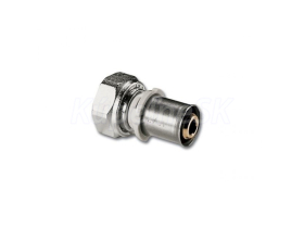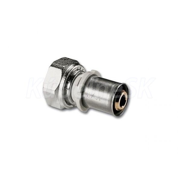 Prechodka PRESS - EK IVAR.PT 5705 s prevlečnou maticou pre napojenie ALPEX potrubia na kúrenárske armatúry a fitingy typu EUROKONUS materiál niklovaná mosaz OT 58, PN 10, T = 120°C, pre použitie: lisovacie kliešte B/F