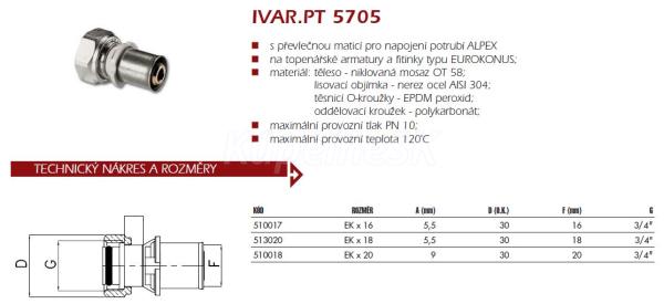 IVAR.PT 5705 Prechodka PRESS - s prevlečnou maticou pre napojenie ALPEX, EK EKx20