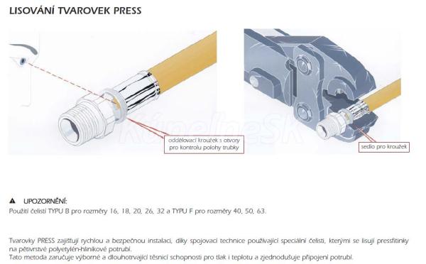Vsuvka PRESS - meď IVAR.PT 570202, pre napojenie potrubia Alpex na Cu potrubie, materiál niklovaná mosadz OT 58, PN 10, +120°C