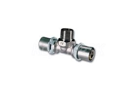 T-kus PRESS - závit vonkajší IVAR.PT 5721 Pre napojenie ALPEX potrubia na armatúru s vnútorným závitom materiál niklovaná mosadz OT 58, PN 10, T = 120°C, pre použitie: lisovacie kliešte B/F