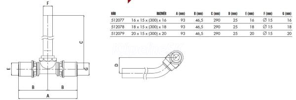 IVAR.PT 5716 T-kus PRESS s pripojovacou trubkou k radiátorovým armatúram, 20x15x(300)x20
