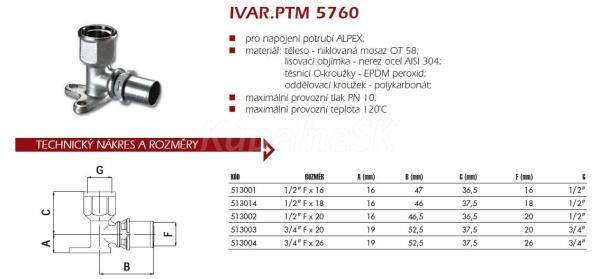 IVAR.PTM 5760 Nástenka PRESS pre potrubie ALPEX, 1/2"Fx20