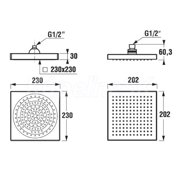 Jika Hlavová sprcha CUBITO štvorcová 202 x 202 mm, chróm Jika Hlavová sprcha CUBITO