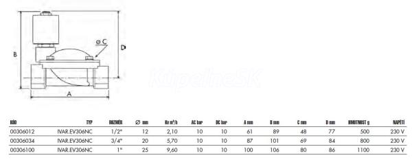 Ivar EV 306 NC Elektroventil Uzatvárací-1/2"FF 230V bez prúdu zavretá