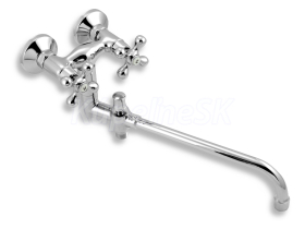 kategória distribúcie Novaservis: Vodovodní baterie | Kohoutkové baterie. Kvalitné a odolné keramické ventily . s 5 ročnou zárukou. Prvotriedne chrómové prevedenie. Paneláková nástenná vaňová batéria s rozostupom 100 mm a výtokovým ramienkom s aretačným prepínačom v dĺžke až 360 mm.