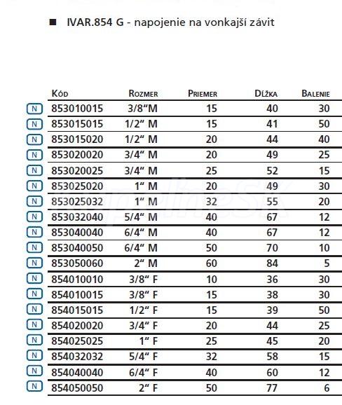vhodné pre pitnú vodu (RÚVZ Poprad), IVAR.854 G - napojenie na vonkajší závit